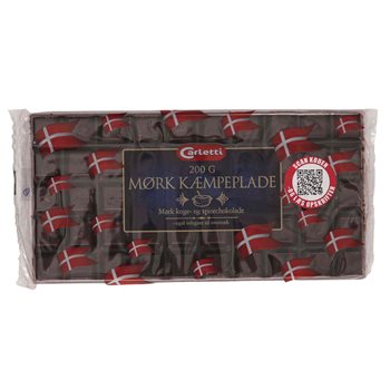 Giant bar in dark chocolate is a well-known bar of chocolate from Carletti. The chocolate with the many flakes is good for melting if you need to use melted or chopped chocolate for baked goods, desserts or fruit. Carletti Giant plate can also be eaten by itself without accessories, if you e.g. have a sweet tooth for dark chocolate.