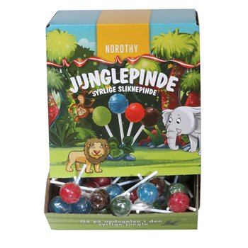 Nordthy invites you to explore the acidic jungle. Jungle sticks are colored lollipops with a fresh and sour taste. You can choose between the flavors blueberry, apple strawberry and cola. The package contains approx. 90 pcs.