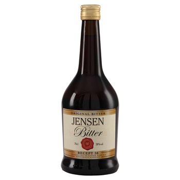 Jensen Bitter is from Aalborg and made from 38 different herbs, including Anise, cardamom, licorice, saffron, the taste is rounded and sof