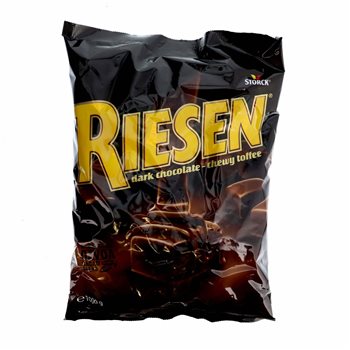 Storck Riesen er store, udsøgte karameller belagt med et tykt lag med stærk mørk chokolade. Chokoladens umiskendelige intense aroma kommer fra den specielt udviklede Gavoa Cocoa-blanding fra udvalgte kakaobønner af høj kvalitet. Aktien Riesen er en godbid for ung og gammel.