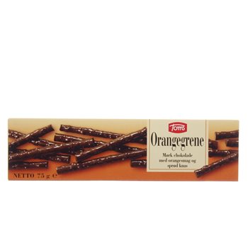 Tom's Orange Grene er en udsøgt chokolade, der smager som den populære kombination af chokolade og orange, som kan være svær at modstå. Du kan bruge Toms Orange Grene på flere forskellige måder, f.eks. Vær et tilbehør, når du slapper af i sofaen, som et supplement til kaffen eller i is -desserten.