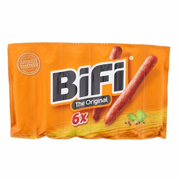 El mini salami original de Bifi es un bocadillo de relleno y sabroso rico en proteínas, que puedes llevar contigo, por ejemplo, el viaje o la caminata cuando necesitas recargar tu cuerpo. La salchicha salami está naturalmente ahumada y sazonada con pimienta y cilantro.