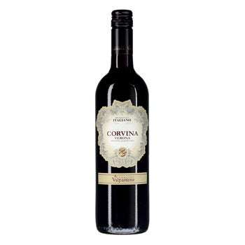 Vino rosso da uva Corvina selezionata a mano da Verona in Italia. Il vino ha un colore rosso intenso e un bouquet caratteristico con note distinte di spezie e frutta rossa matura. Velvety al palato e particolarmente adatto per pasta, pizza e carne leggera come il pollo.