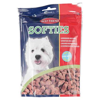 Beste venn Softies Soft Bites er en deilig matbit til hunden din. Denne vesken inneholder godbiter som kan spises av hunder i alle størrelser. Her kan hunden din få en godbit med mye ernæring, siden maten blant annet inneholder flere forskjellige vitaminer som er bra for hunden din. Produsert av beste venn, som har laget godbiter for hunder i alle størrelser i mange år, og som er kjent for god kvalitet.