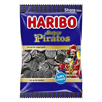 Super piratos de la Haribo sunt ducați rotunde, duri și extra puternici. Gustul este frumos sărat, cu o notă de Salmiak și durează mult timp în gură. Super Piratos este un favorit clar cu toți iubitorii de licor. Nu este potrivit pentru copii.