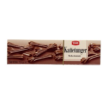 O ciocolată de desert foarte cunoscută, Toms Kattetunger. Cutia conține ciocolată ușoară care se topește pe limbă și seduce cu gustul său minunat. Toms a fost întotdeauna un garant al ciocolatei de primă clasă, ceea ce este și cazul limbilor pisicii. De exemplu, serviți ciocolata ca însoțire la o ceașcă bună de cafea.